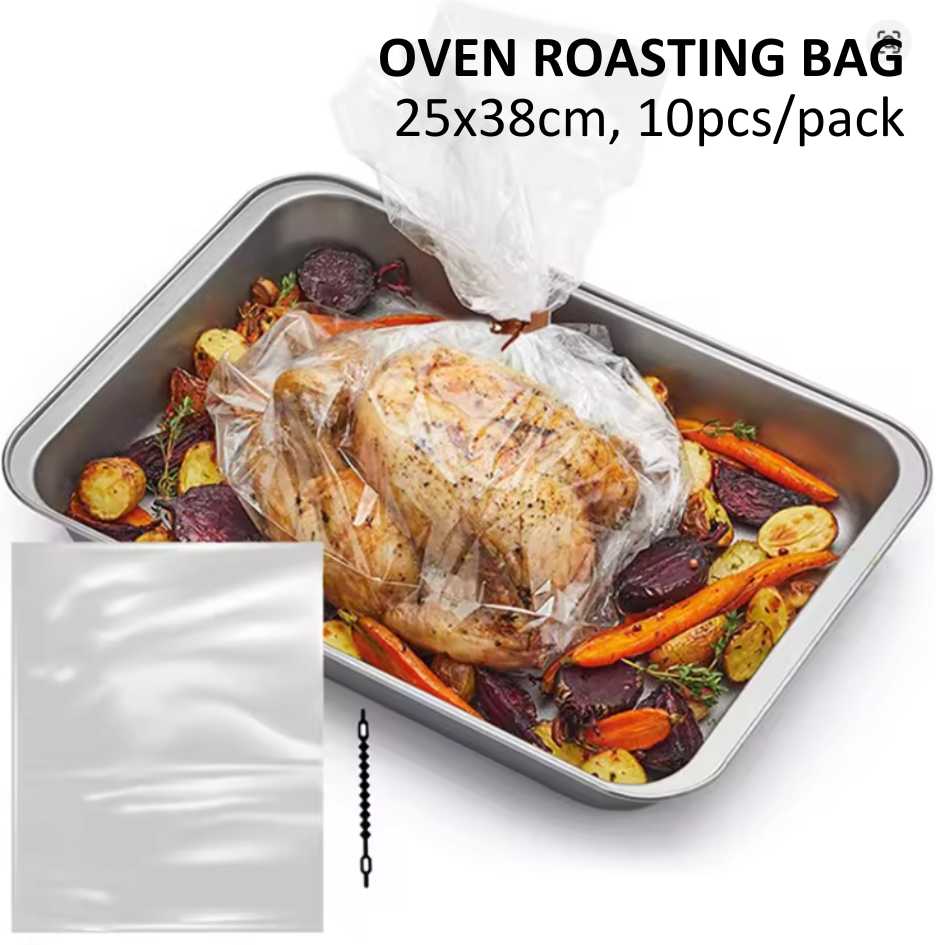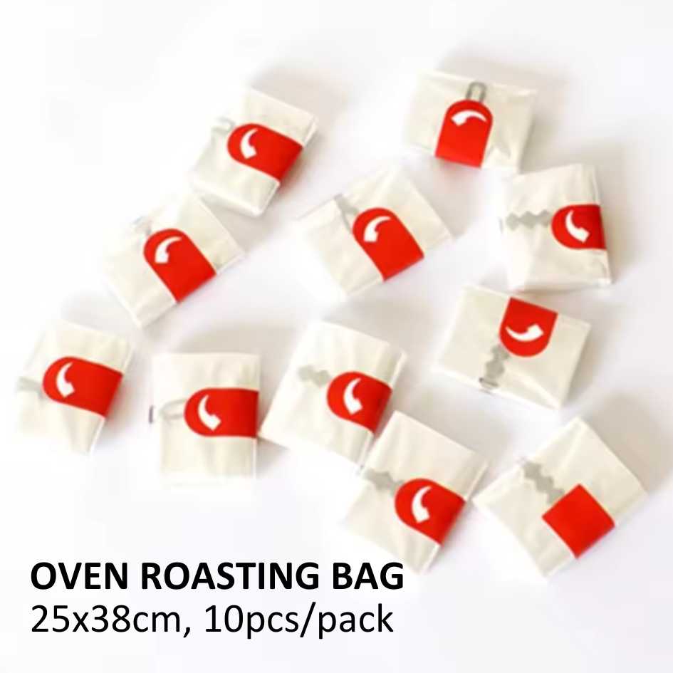 Kantong panggang food-grade yang aman digunakan di dalam oven, dirancang khusus untuk memanggang ayam atau kalkun utuh secara merata dan efisien. Kantong ini menahan panas dan kelembapan di dalam, sehingga daging tetap juicy, empuk, dan kaya rasa, sekaligus mengurangi cipratan minyak dan kotoran di oven.