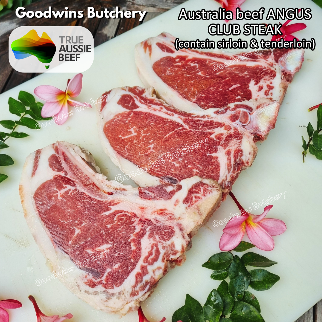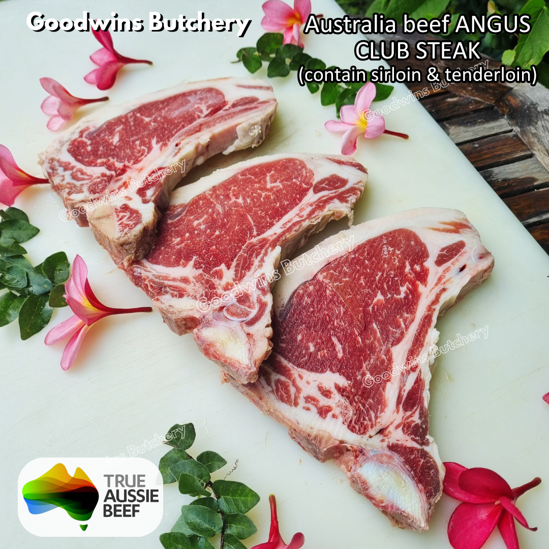 When the beef shortloin is cut with bandsaw become steaks; half of it has descent size of tenderloin we name it as TBONE STEAK or PORTERHOUSE, while the other half has less/small bits of tenderloin we name them as TBONE CLUB STEAK which is automatically cheaper than the TBONE.