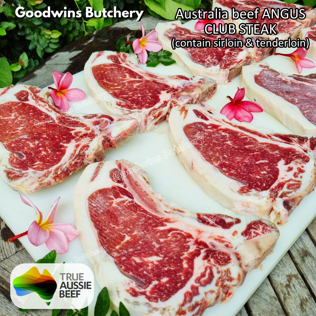 When the beef shortloin is cut with bandsaw become steaks; half of it has descent size of tenderloin we name it as TBONE STEAK or PORTERHOUSE, while the other half has less/small bits of tenderloin we name them as TBONE CLUB STEAK which is automatically cheaper than the TBONE.