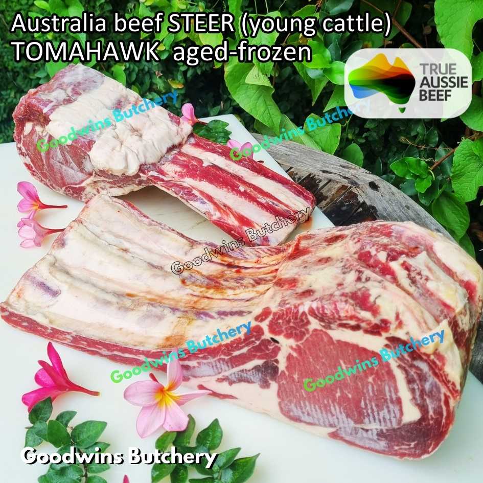 Tomahawk: ribeye bertulang panjang (fokus pada tampilan dan presentasi)