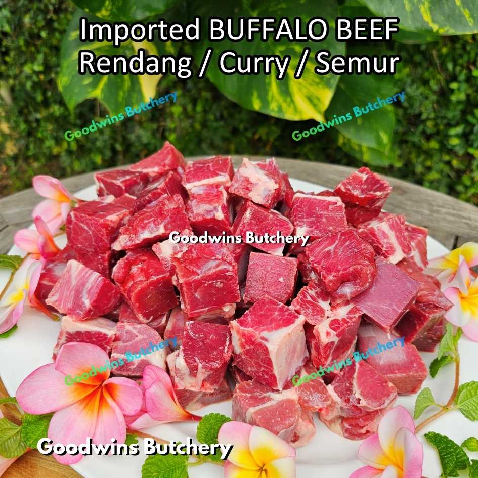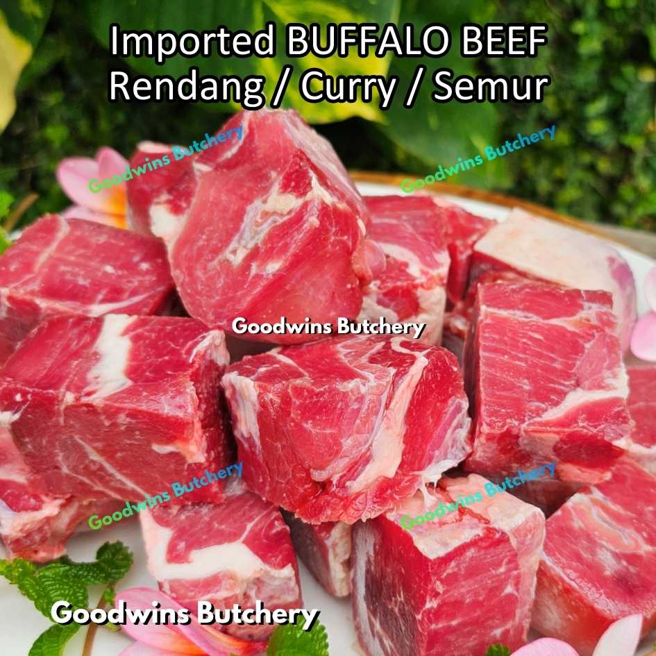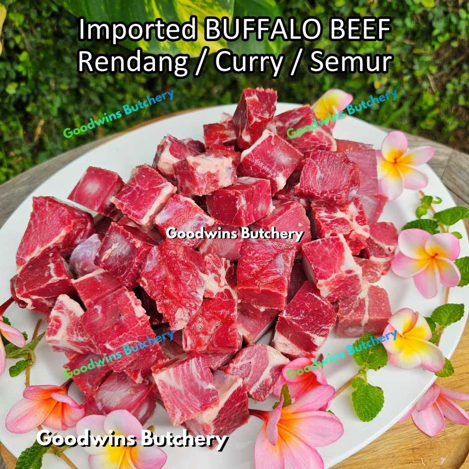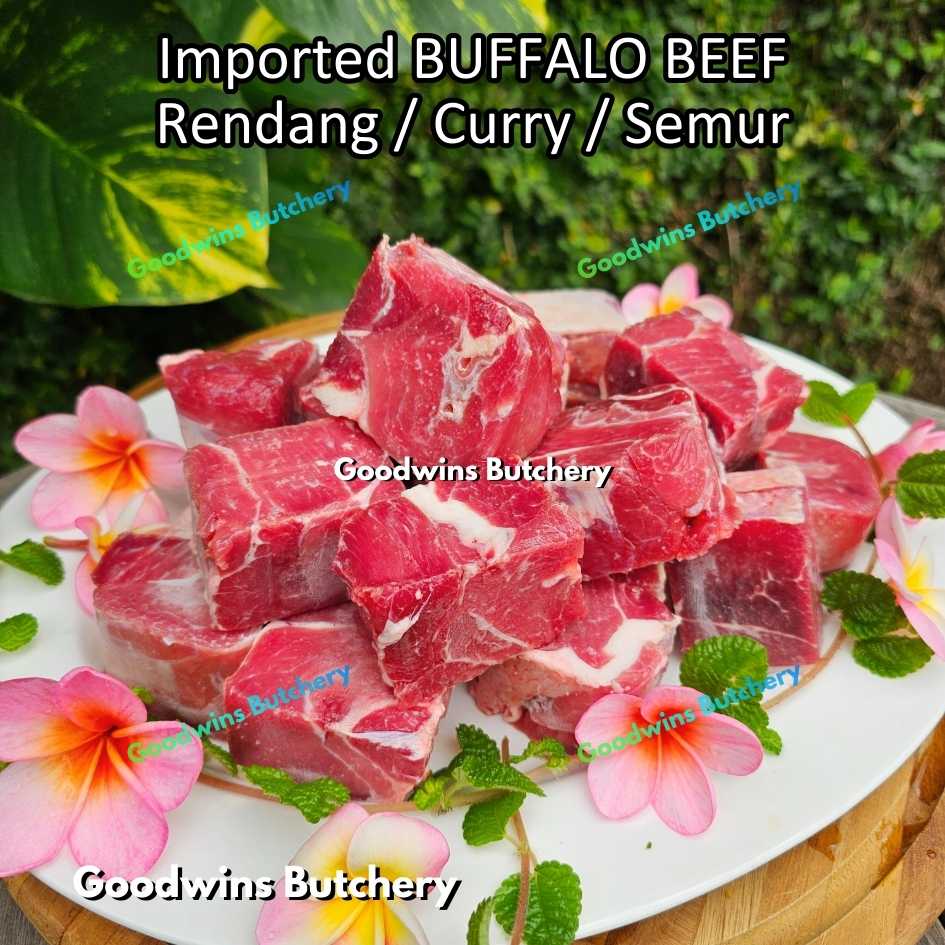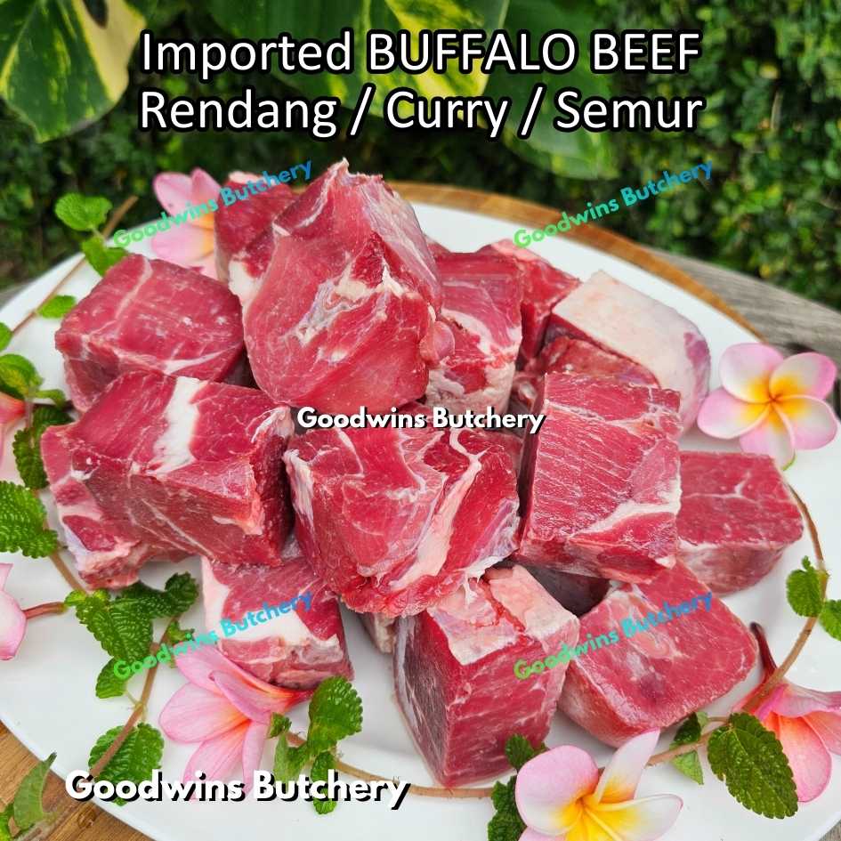 Daging kerbau impor kualitas premium, dipotong khusus untuk rendang dan masakan kari. Dipilih dengan komposisi daging dan lemak yang seimbang sehingga menghasilkan tekstur empuk dan rasa yang kaya saat dimasak perlahan.